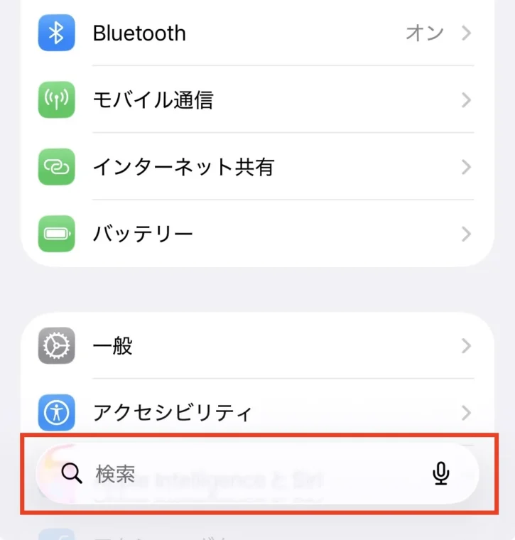 iosが古いバージョンだと検索ボックスがない場合もあるので、その場合はメニューの中からアプリを選択し、メールアプリを見つけてください。