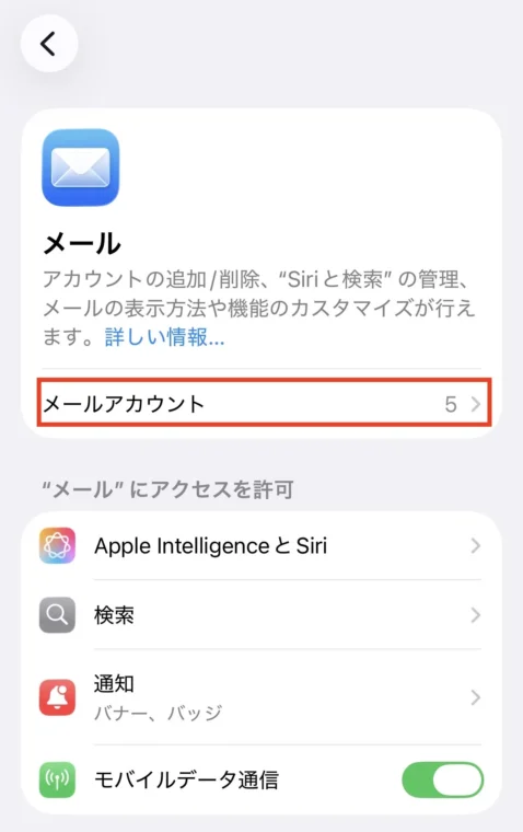 4.「メールアカウント」をタップ