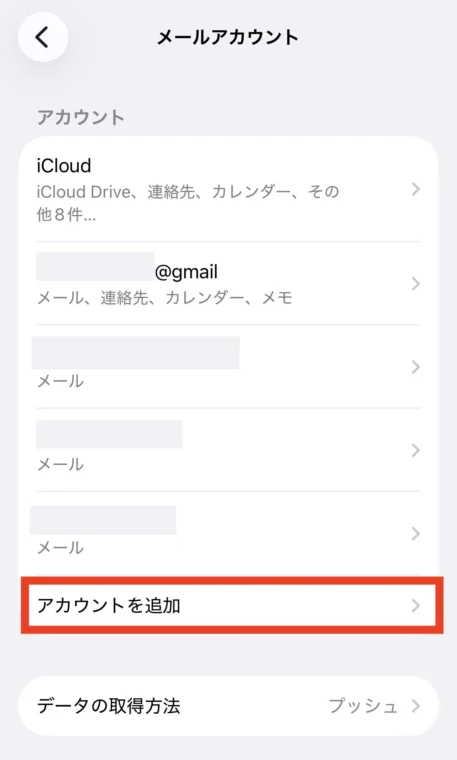 ここで新しいアカウントを追加するので、「アカウントを追加」をタップします。